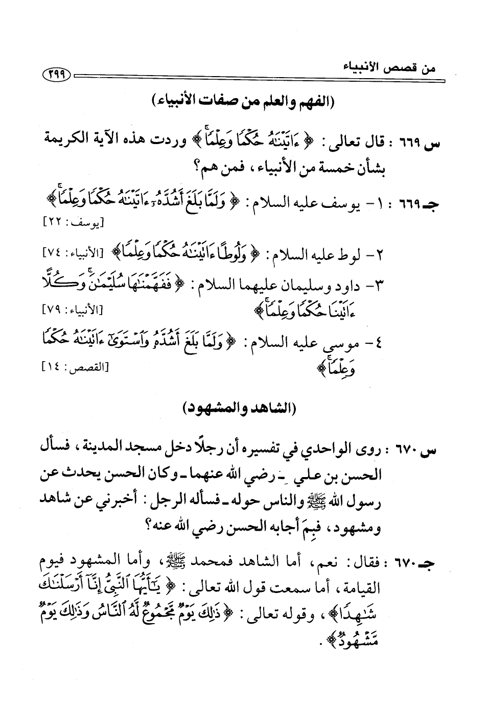 (س 669:) قال تعالى: آتَيْناهُ حُكْماً وَعِلْماً وردت هذه الآية الكريمة بشأن خمسة من الأنبياء، فمن هم؟