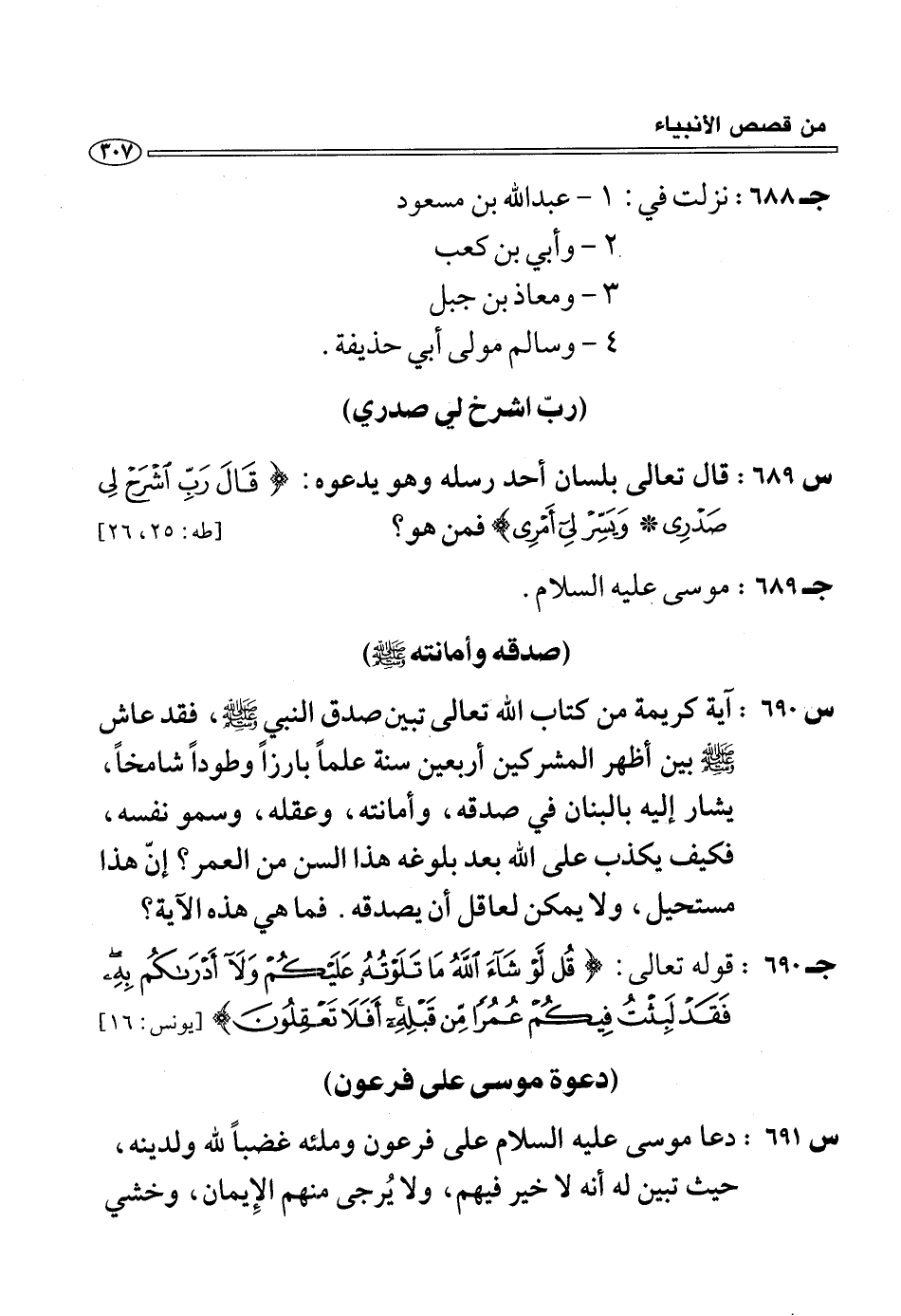 (س 689:) قال تعالى بلسان أحد رسله وهو يدعوه: قالَ رَبِّ اشْرَحْ لِي صَدْرِي* وَيَسِّرْ لِي أَمْرِي فمن هو؟ [طه: 25، 26] (ج 689:) موسى عليه السلام.
