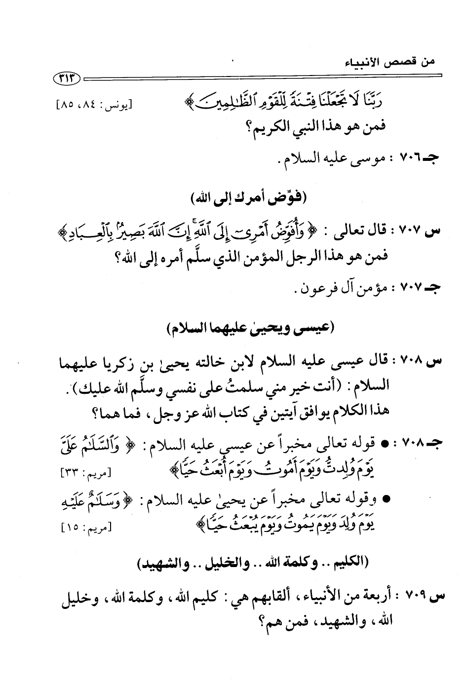 (س 709:) أربعة من الأنبياء، ألقابهم هي: كليم الله، وكلمة الله، وخليل الله، والشهيد، فمن هم؟