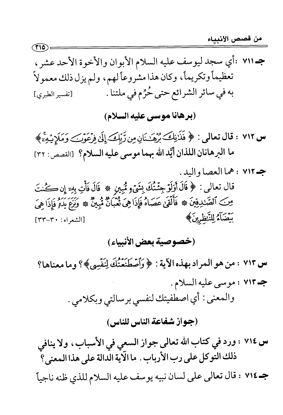 (س 712:) قال تعالى: فَذانِكَ بُرْهانانِ مِنْ رَبِّكَ إِلى فِرْعَوْنَ وَمَلَائِهِ ما البرهانان اللذان أيّد الله بهما موسى عليه السلام؟ [القصص: 32] (ج 712:) هما العصا واليد.