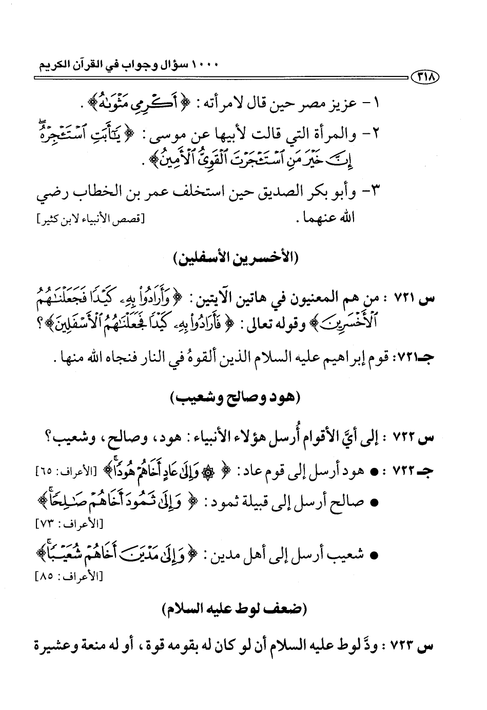 (س 722:) إلى أيّ الأقوام أرسل هؤلاء الأنبياء: هود، وصالح، وشعيب؟
