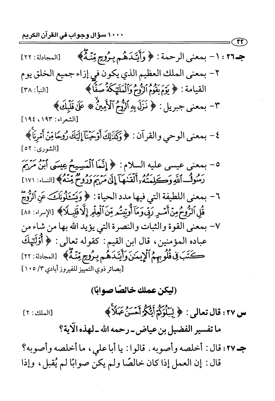 (س 27:) قال تعالى: لِيَبْلُوَكُمْ أَيُّكُمْ أَحْسَنُ عَمَلًا [الملك: 2] ما تفسير الفضيل بن عياض- رحمه الله- لهذه الآية؟