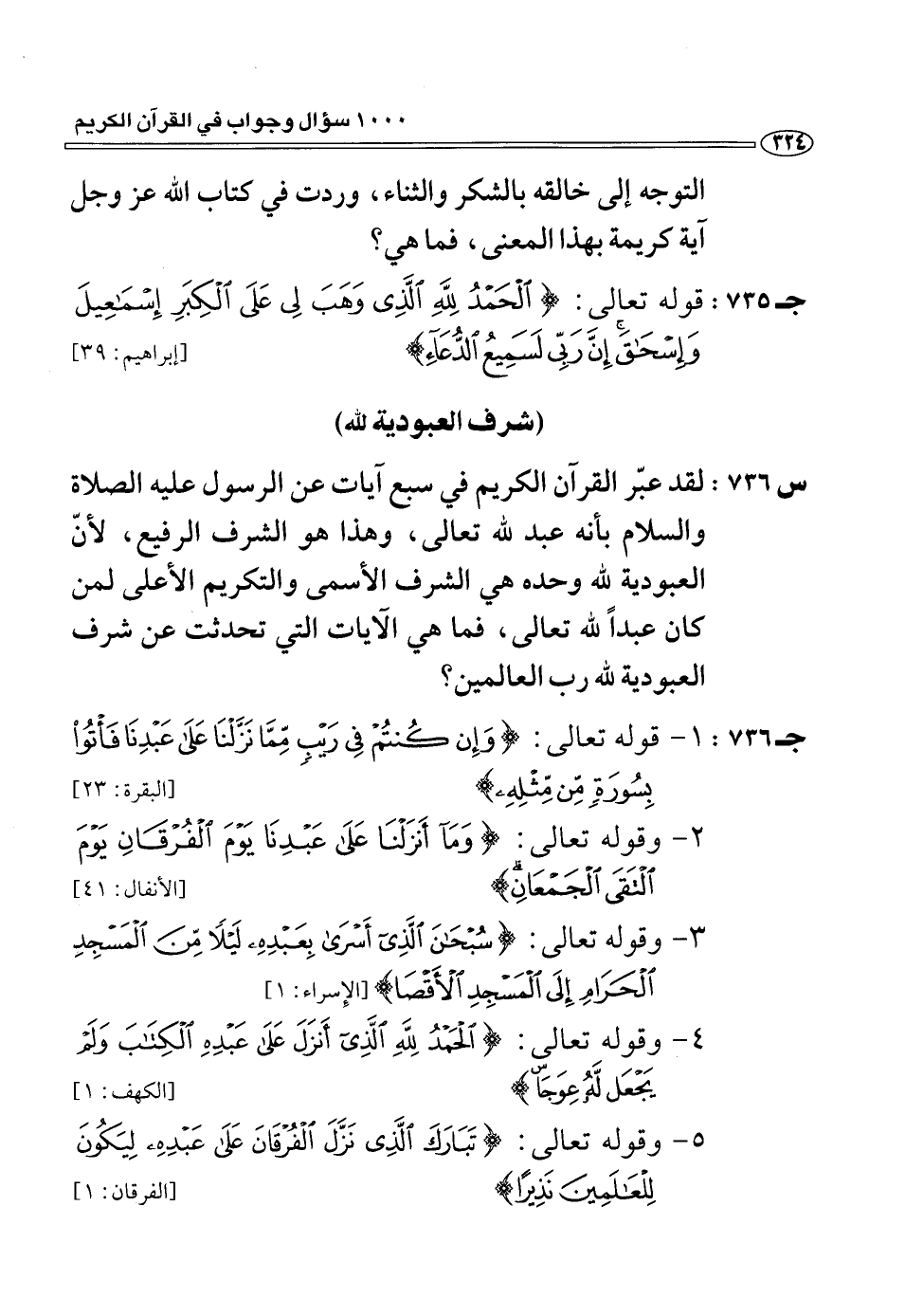 (ج 736:) 1 - قوله تعالى: وَإِنْ كُنْتُمْ فِي رَيْبٍ مِمَّا نَزَّلْنا عَلى عَبْدِنا فَأْتُوا بِسُورَةٍ مِنْ مِثْلِهِ [البقرة: 23] 2 - وقوله تعالى: وَما أَنْزَلْنا عَلى عَبْدِنا يَوْمَ الْفُرْقانِ يَوْمَ الْتَقَى الْجَمْعانِ [الأنفال: 41] 3 - وقوله تعالى: سُبْحانَ الَّذِي أَسْرى بِعَبْدِهِ لَيْلًا مِنَ الْمَسْجِدِ الْحَرامِ إِلَى الْمَسْجِدِ الْأَقْصَى [الإسراء: 1] 4 - وقوله تعالى: الْحَمْدُ لِلَّهِ الَّذِي أَنْزَلَ عَلى عَبْدِهِ الْكِتابَ وَلَمْ يَجْعَلْ لَهُ عِوَجاً [الكهف: 1] 5 - وقوله تعالى: تَبارَكَ الَّذِي نَزَّلَ الْفُرْقانَ عَلى عَبْدِهِ لِيَكُونَ لِلْعالَمِينَ نَذِيراً [الفرقان: 1]