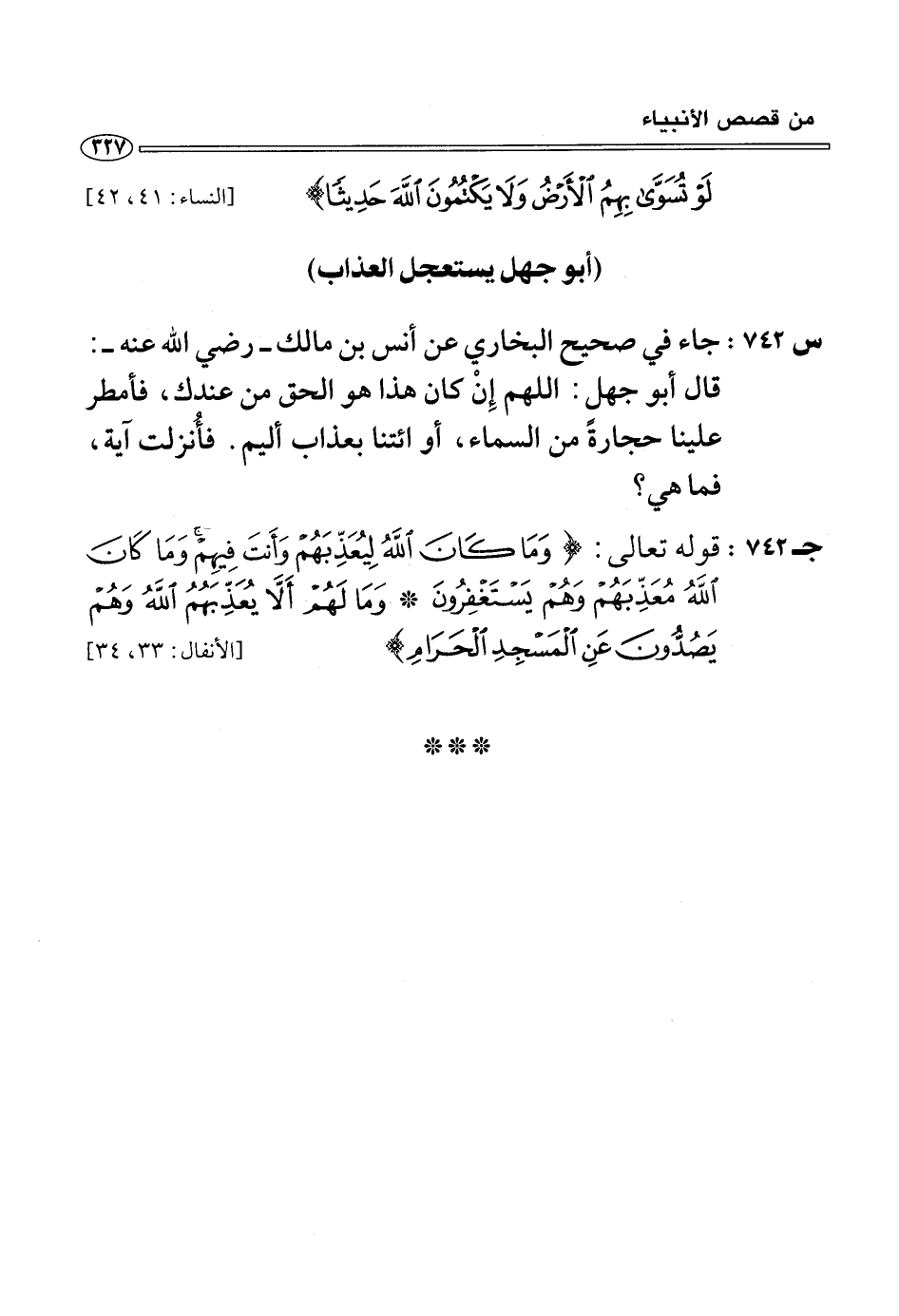 (س 742:) جاء في صحيح البخاري عن أنس بن مالك- رضي الله عنه-: