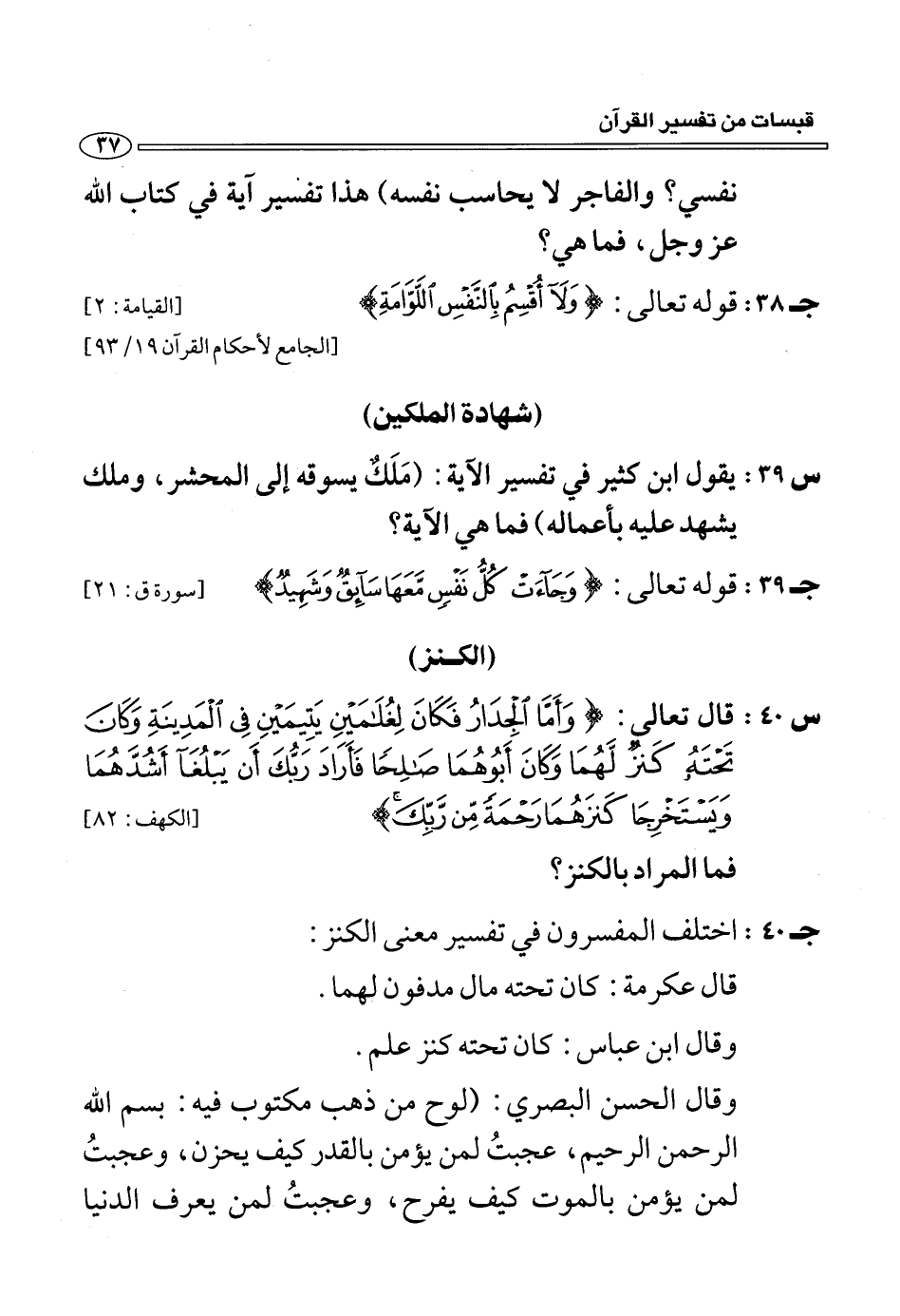(ج 40:) اختلف المفسرون في تفسير معنى الكنز: