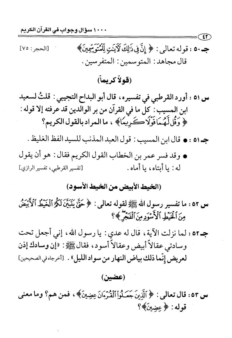 (س 52:) ما تفسير رسول الله صلّى الله عليه وسلّم لقوله تعالى: حَتَّى يَتَبَيَّنَ لَكُمُ الْخَيْطُ الْأَبْيَضُ مِنَ الْخَيْطِ الْأَسْوَدِ مِنَ الْفَجْرِ؟