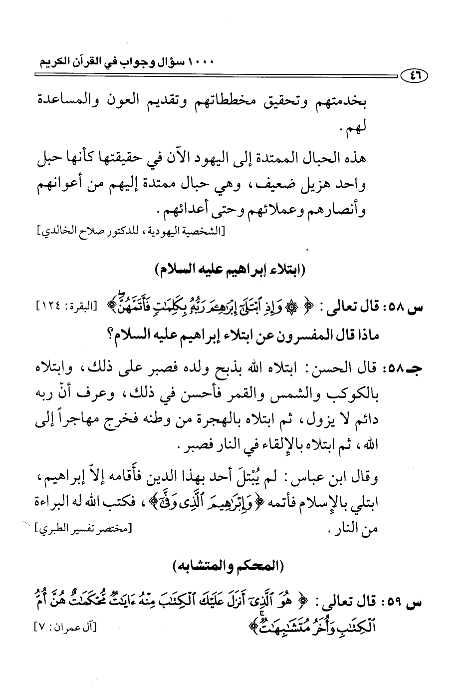 (س 58:) قال تعالى:* وَإِذِ ابْتَلى إِبْراهِيمَ رَبُّهُ بِكَلِماتٍ فَأَتَمَّهُنَّ [البقرة: 124] ماذا قال المفسرون عن ابتلاء إبراهيم عليه السلام؟