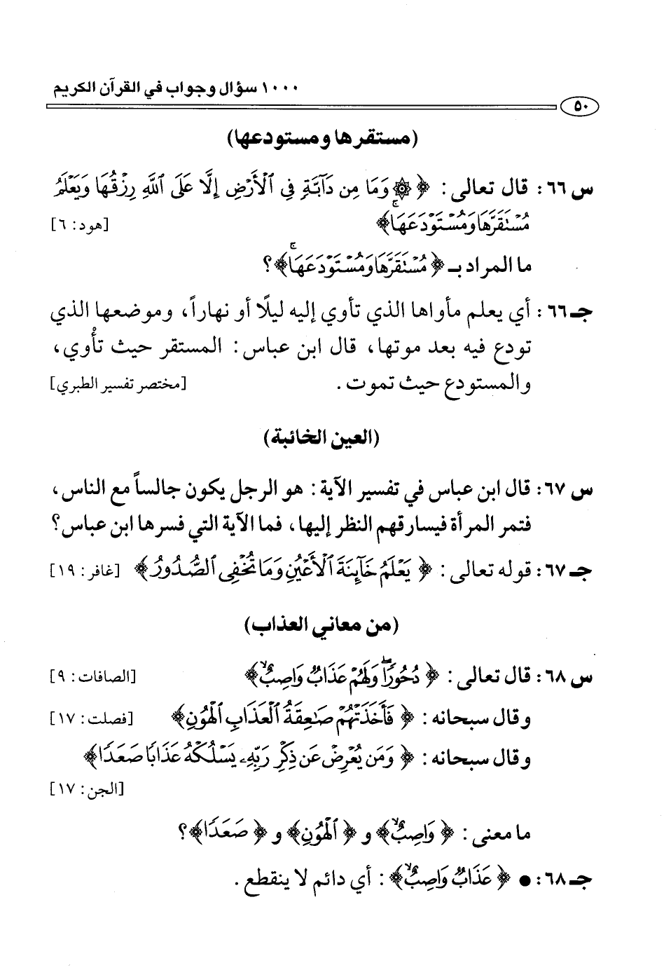 (س 68:) قال تعالى: دُحُوراً وَلَهُمْ عَذابٌ واصِبٌ [الصافات: 9] وقال سبحانه: فَأَخَذَتْهُمْ صاعِقَةُ الْعَذابِ الْهُونِ [فصلت: 17] وقال سبحانه: وَمَنْ يُعْرِضْ عَنْ ذِكْرِ رَبِّهِ يَسْلُكْهُ