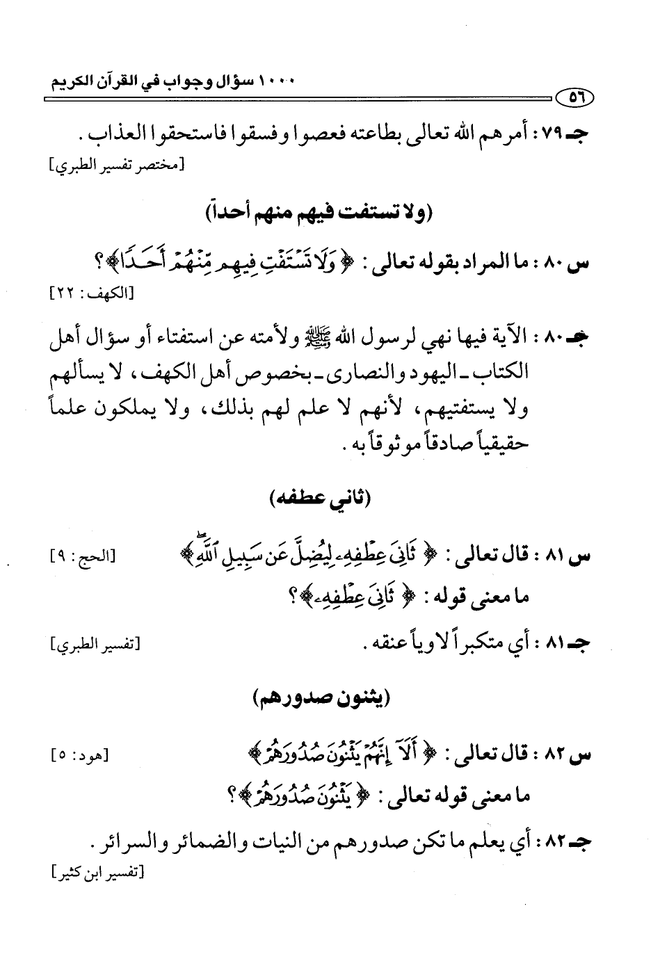 (س 82:) قال تعالى: أَلا إِنَّهُمْ يَثْنُونَ صُدُورَهُمْ [هود: 5] ما معنى قوله تعالى: يَثْنُونَ صُدُورَهُمْ؟