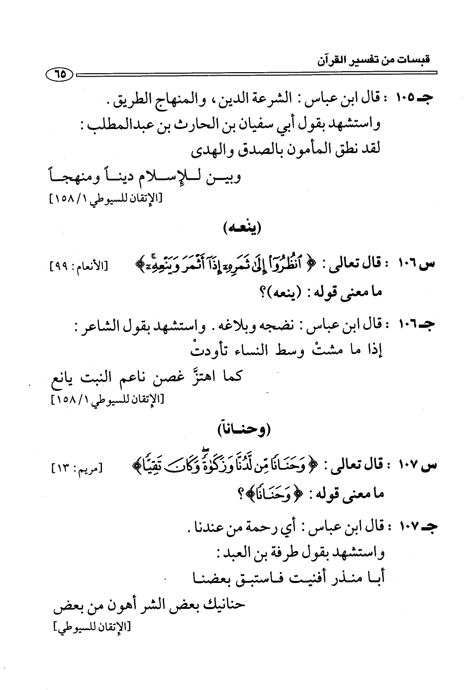 (س 106:) قال تعالى: انْظُرُوا إِلى ثَمَرِهِ إِذا أَثْمَرَ وَيَنْعِهِ [الأنعام: 99] ما معنى قوله: (ينعه)؟