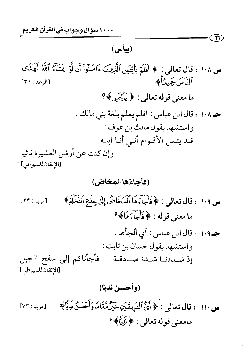 (س 108:) قال تعالى: أَفَلَمْ يَيْأَسِ الَّذِينَ آمَنُوا أَنْ لَوْ يَشاءُ اللَّهُ لَهَدَى النَّاسَ جَمِيعاً [الرعد: 31] ما معنى قوله تعالى: يَيْأَسِ؟