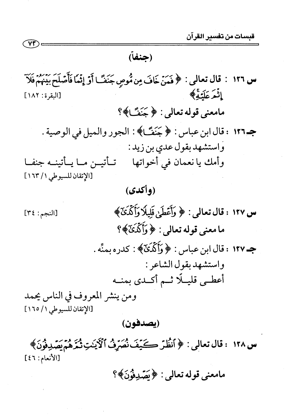 (س 128:) قال تعالى: انْظُرْ كَيْفَ نُصَرِّفُ الْآياتِ ثُمَّ هُمْ يَصْدِفُونَ [الأنعام: 46] ما معنى قوله تعالى: يَصْدِفُونَ؟