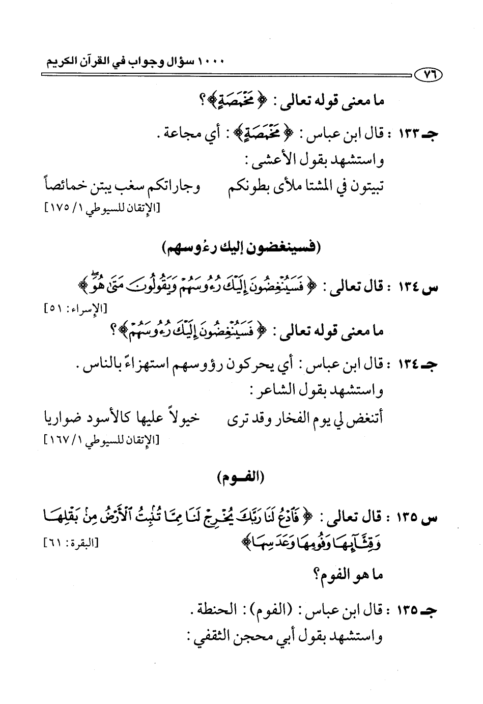 (س 134:) قال تعالى: فَسَيُنْغِضُونَ إِلَيْكَ رُؤُسَهُمْ وَيَقُولُونَ مَتى هُوَ [الإسراء: 51] ما معنى قوله تعالى: فَسَيُنْغِضُونَ إِلَيْكَ رُؤُسَهُمْ؟