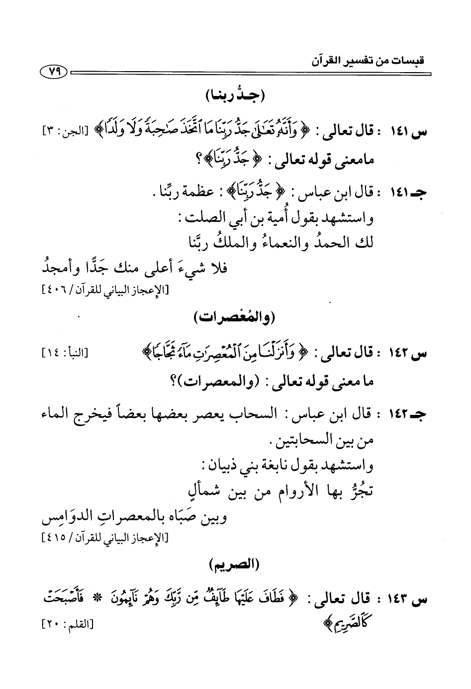 (س 141:) قال تعالى: وَأَنَّهُ تَعالى جَدُّ رَبِّنا مَا اتَّخَذَ صاحِبَةً وَلا وَلَداً [الجن: 3] ما معنى قوله تعالى: جَدُّ رَبِّنا؟