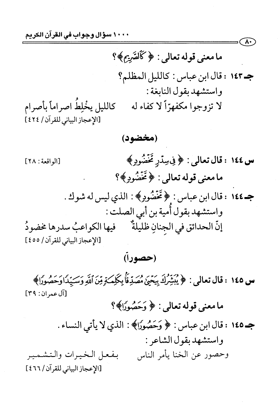 (ج 145:) قال ابن عباس: وَحَصُوراً: الذي لا يأتي النساء.