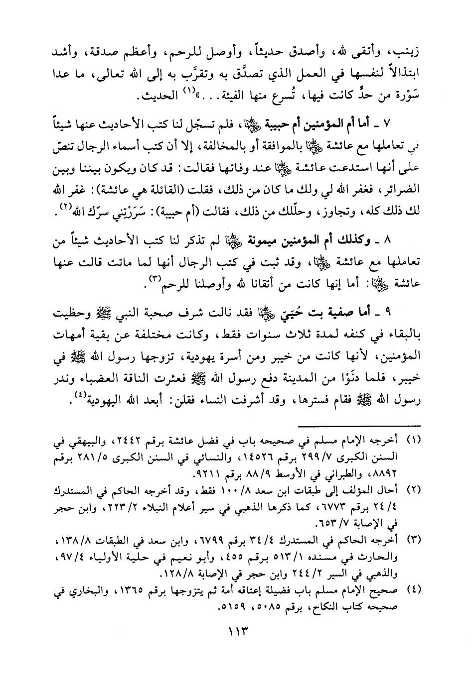 8 - وكذلك أم المؤمنين ميمونة (ض) لم تذكر لنا كتب الأحاديث شيئا من تعاملها مع عائشة (ض)، وقد ثبت في كتب الرجال أنها لما ماتت قالت عنها عائشة (ض): أما إنها كانت من أتقانا لله وأوصلنا للرحم (¬3).