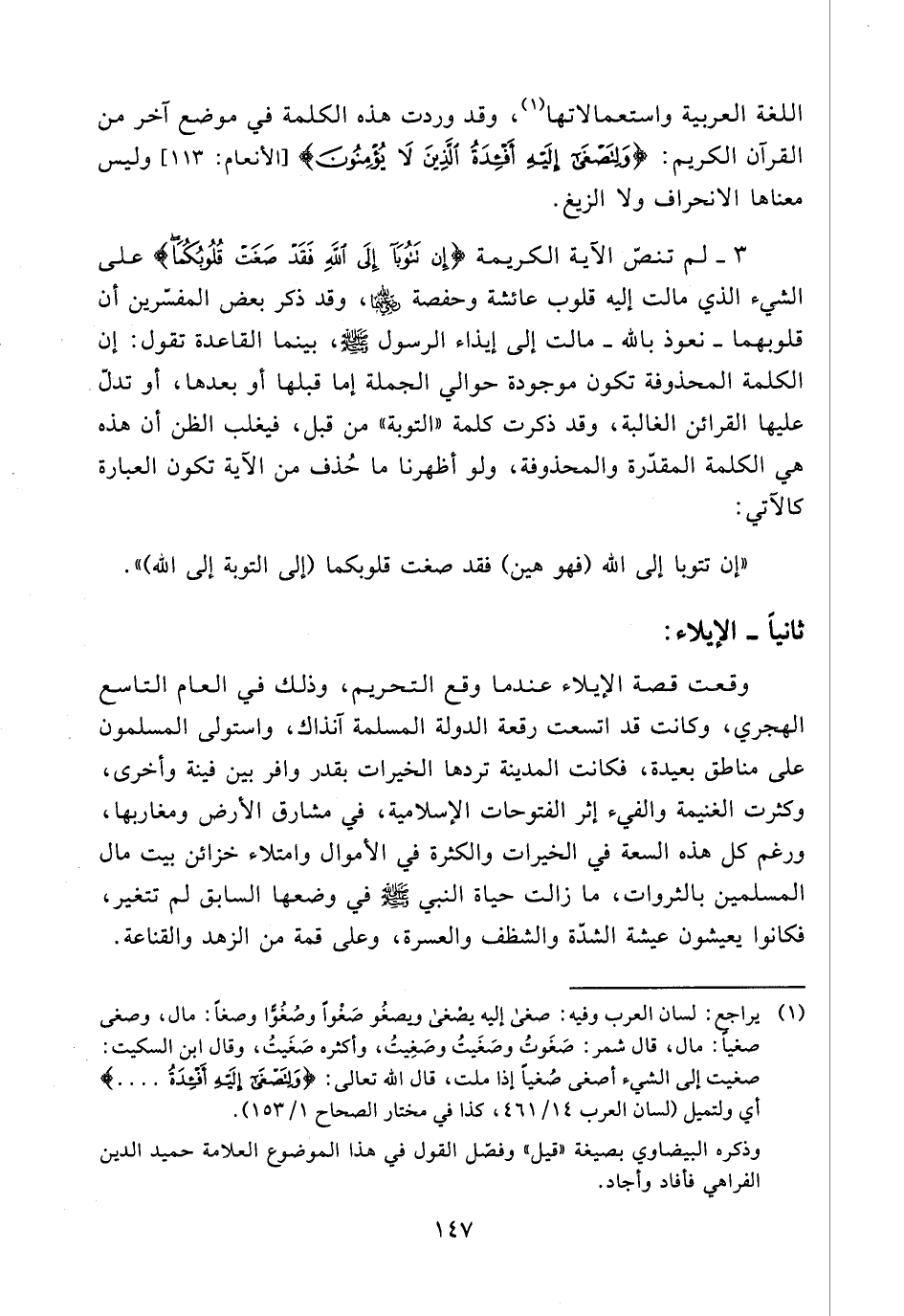 اللغة العربية واستعمالاتها (¬1)، وقد وردت هذه الكلمة في موضع آخر من القرآن الكريم: {وَلِتَصْغَى إِلَيْهِ أَفْئِدَةُ الَّذِينَ لَا يُؤْمِنُونَ} [الأنعام: 113] وليس معناها الانحراف ولا الزيغ.