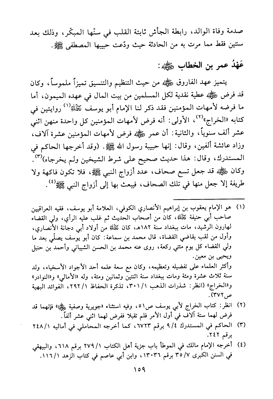(¬1) هو الإمام يعقوب بن إبراهيم الأنصاري الكوفي، العلامة أبو يوسف، فقيه العراقيين صاحب أبي حنيفة (ض)، كان من أصحاب الحديث ثم غلب عليه الرأي، ولي القضاء لهارون الرشيد، مات ببغداد سنة 182هـ، كان (ح) من أولاد أبي دجانة الأنصاري،