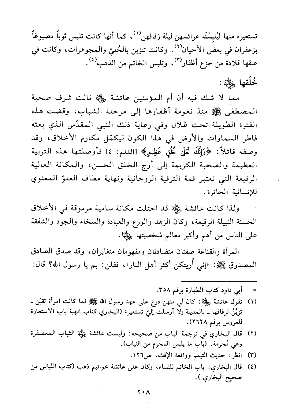 (¬4) قال البخاري: باب الخاتم للنساء، وكان على عائشة خواتيم ذهب (كتاب اللباس من صحيح البخاري).