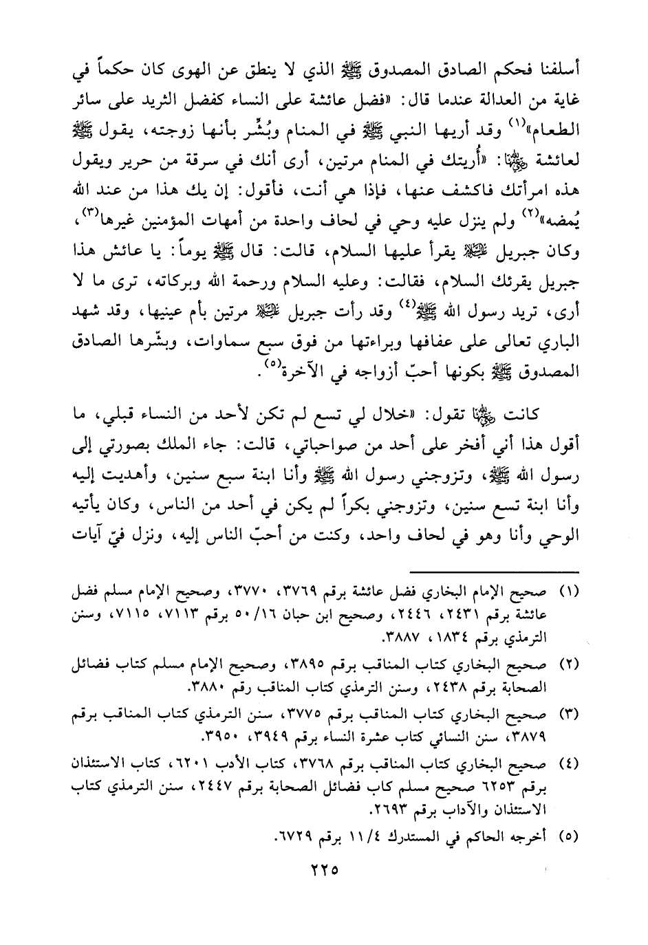 (¬1) صحيح الإمام البخاري فضل عائشة برقم 3769، 3770، وصحيح الإمام مسلم فضل عائشة برقم 2431، 2446، وصحيح ابن حبان 16/ 50 برقم 7113، 7115، وسنن الترمذي برقم 1834، 3887.