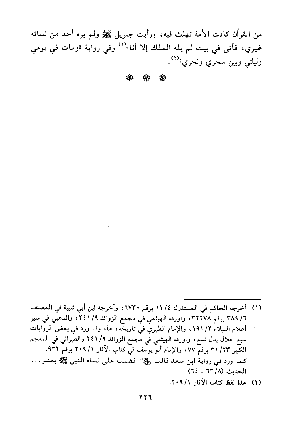 من القرآن كادت الأمة تهلك فيه، ورأيت جبريل - صلى الله عليه وسلم - ولم يره أحد من نسائه غيري، فأتى في بيت لم يله الملك إلا أنا)) (¬1) وفي رواية ((ومات في يومي وليلتي وبين سحري ونحري)) (¬2).