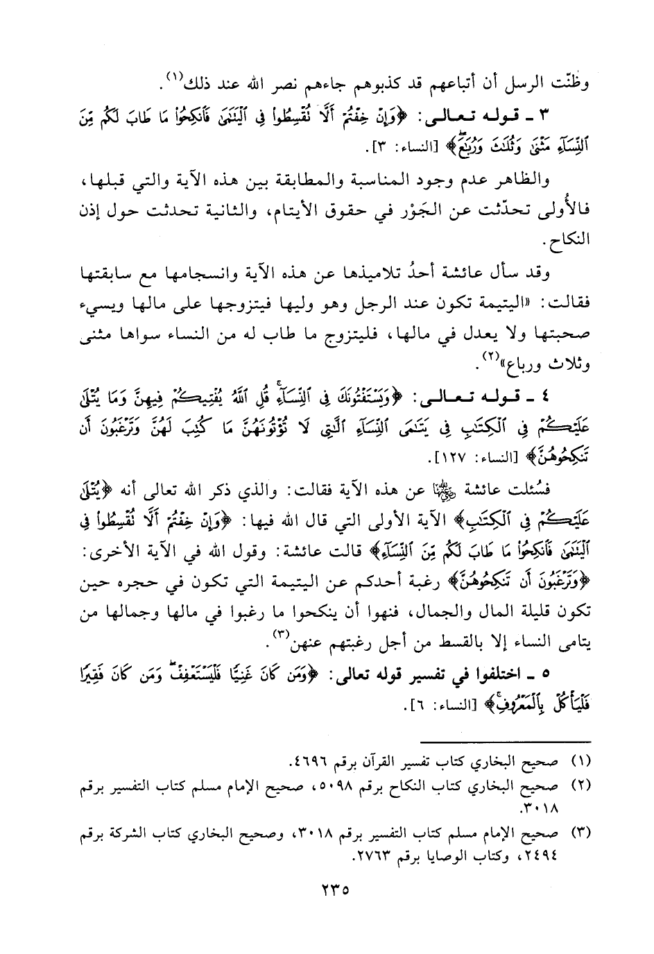 (¬3) صحيح الإمام مسلم كتاب التفسير برقم 3018، وصحيح البخاري كتاب الشركة برقم 2494، وكتاب الوصايا برقم 2763.