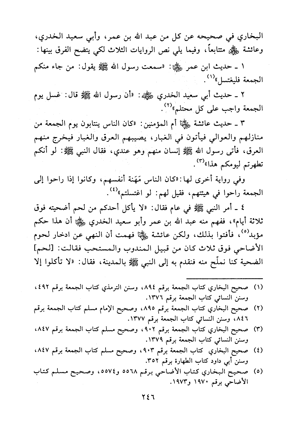 (¬4) صحيح البخاري كتاب الجمعة برقم 903، وصحيح سلم كتاب الجمعة برقم 847، وسنن أبي داود كتاب الطهارة برقم 352.