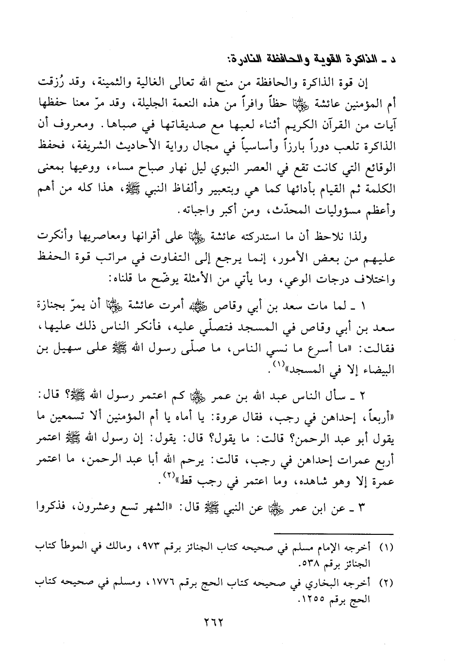 ولذا نلاحظ أن ما استدركته عائشة (ض) على أقرانها ومعاصريها وأنكرت عليهم من بعض الأمور، إنما يرجع إلى التفاوت في مراتب قوة الحفظ واختلاف درجات الوعي، وما يأتي من الأمثلة يوضح ما قلناه: