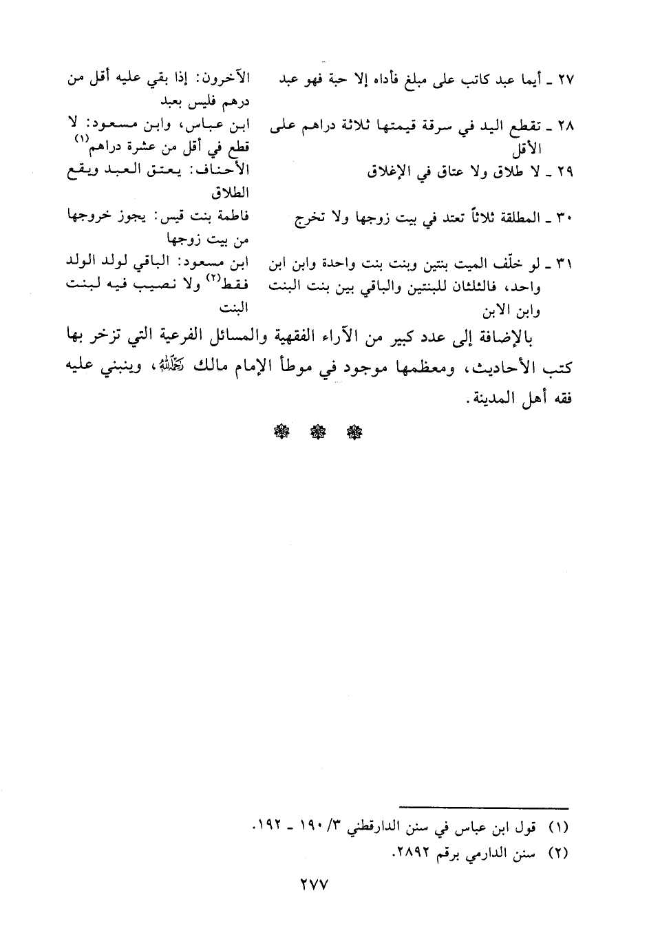 27 - أيما عبد كاتب على مبلغ فأداه إلا حبة فهو عبد ..................................... الآخرون: إذا بقي عليه أقل من درهم فليس بعبد