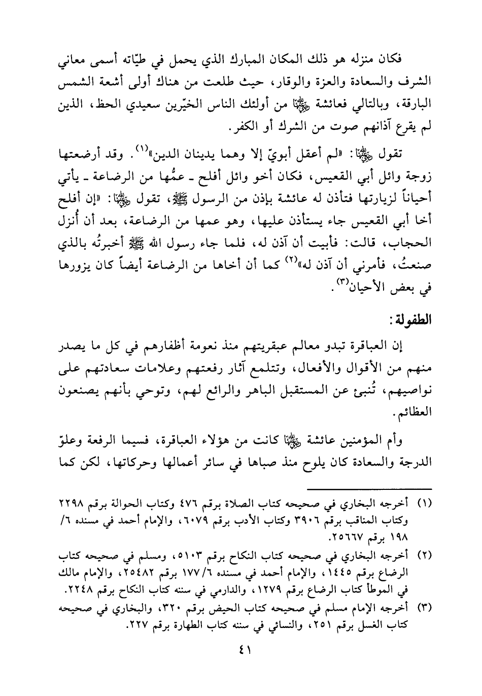 (¬1) أخرجه البخاري في صحيحه كتاب الصلاة برقم 476 وكتاب الحوالة برقم 2298 وكتاب المناقب رقم 3906 وكتاب الأدب رقم 6079، والإمام أحمد في مسنده 6/ 198 برقم 25667.