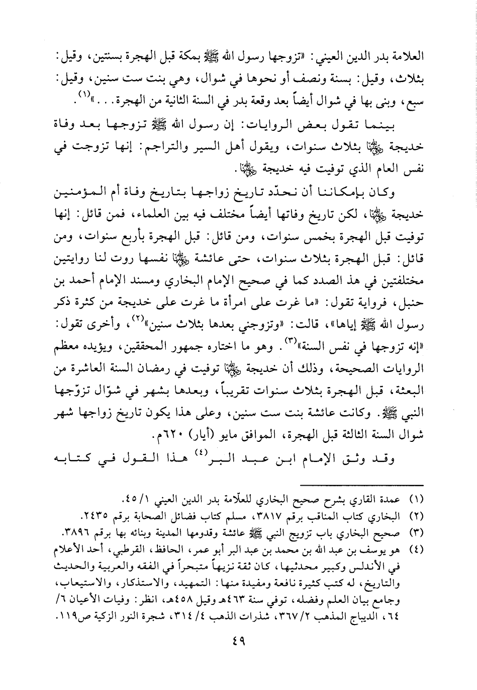 (¬4) هو يوسف بن عبد الله بن محمد بن عبد البر أبو عمر، الحافظ، القرطبي، أحد الأعلام في الأندلس وكبير محدثيها، كان ثقة نزيها متبحرا في الفقه والعربية والحديث والتاريخ، له كتب كثيرة نافعة ومفيدة منها: التمهيد، والاستذكار، والاستيعاب، وجامع بيان العلم وفضله، توفي سنة 463 هـ وقيل 458 هـ، انظر: وفيات الأعيان 6/