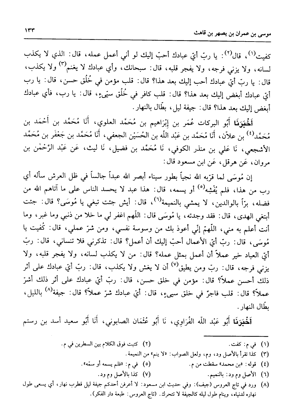 (8) ورد في تاج العروس (جيف) : وفي حديث ابن مسعود: لا أعرفن أحدكم جيفة ليل قطرب نهار أي يسعى طول نهاره لدنياه وينام طول ليله كالجيفة لا تتحرك (تاج العروس: طبعة دار الفكر)