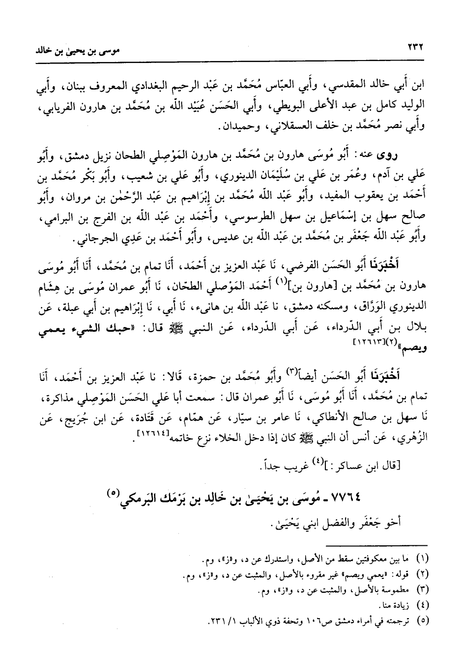 7764 - موسى بن يحيى بن خالد بن برمك البرمكي (5) أخو جعفر والفضل ابني يحيى