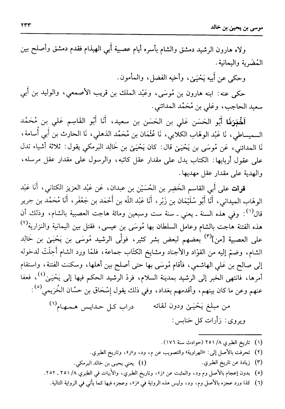 (1) تاريخ الطبري 8 / 251 (حوادث سنة 176)
