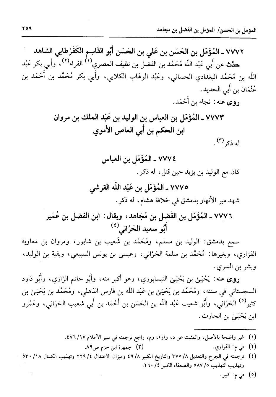 7773 - المؤمل بن العباس بن الوليد بن عبد الملك بن مروان ابن الحكم بن أبي العاص الأموي له ذكر (3) 7774 المؤمل بن العباس كان مع الوليد بن يزيد حين قتل له ذكر