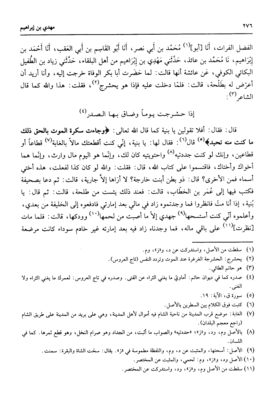 (4) صدره كما في ديوان حاتم: أماوي ما يغني الثراء عن الفتى