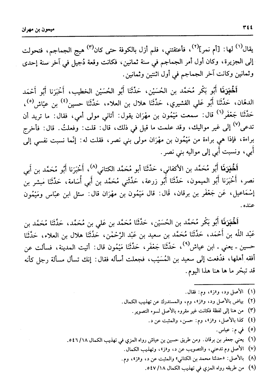 (9) من طريقه رواه المزي في تهذيب الكمال 18 / 547