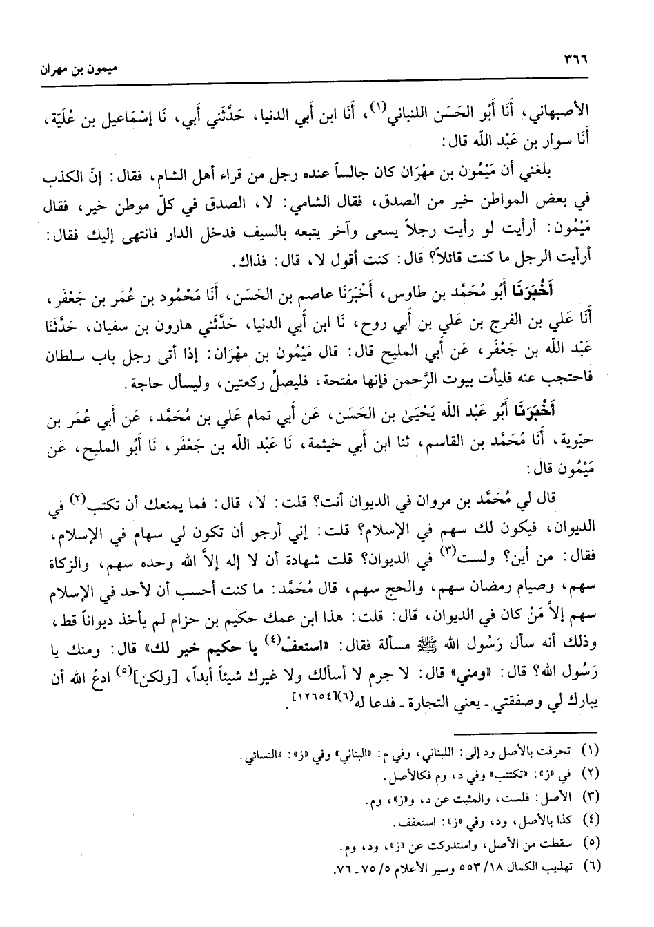 (6) تهذيب الكمال 18 / 553 وسير الاعلام 5 / 75 - 76