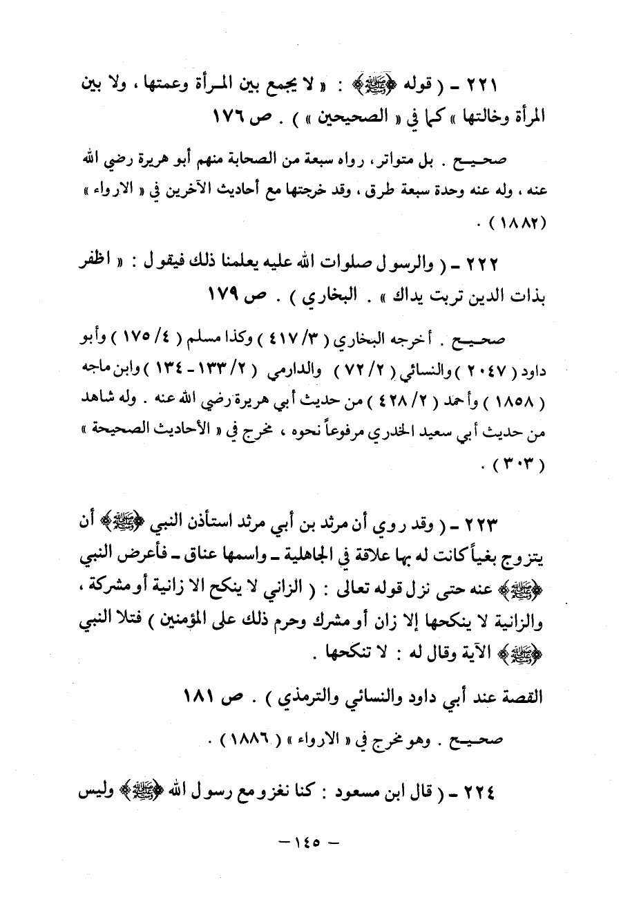 لا يجمع بين المرأة وعمتها ولا بين المرأة وخالتها حديث متواتر رواه سبعة من الصحابة منهم أبو هريرة وله عنه وحده سبعة طرق مخرج في الإرواء