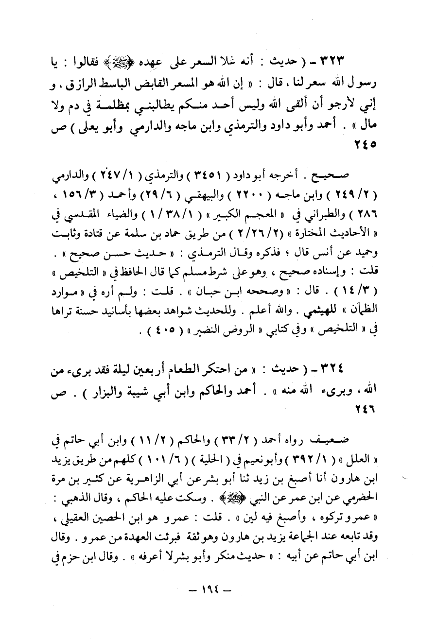 غلا السعر على عهده (ص) فقالوا: يا رسول الله سعر لنا قال: إن الله هو المسعر القابض الباسط الرازق وإني لأرجو أن ألقى الله وليس أحد منكم يطالبني بمظلمة في دم ولا مال صحيح أخرجه أبو داود والترمذي والدارمي وابن ماجة والبيهقي واحمد والطبراني والضياء المقدسي