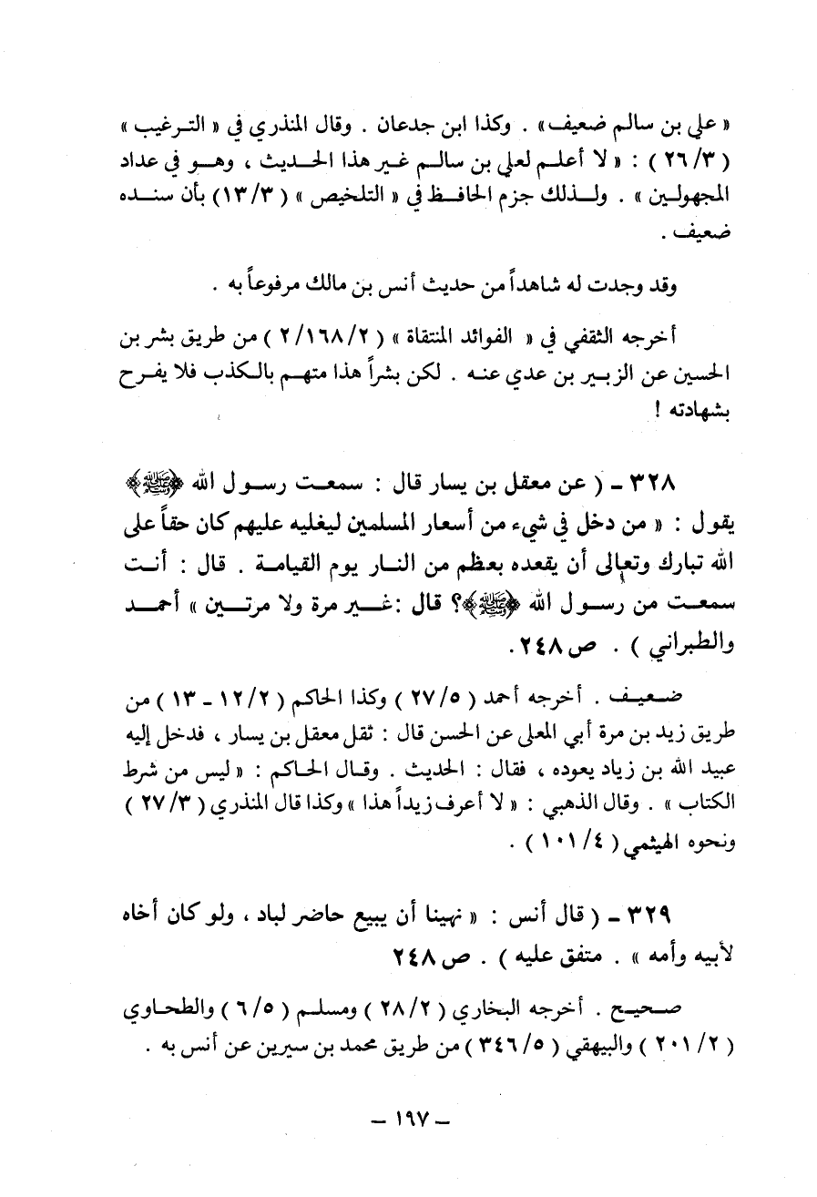 عن معقل بن يسار قال: سمعت رسول الله (ص) يقول: من دخل في شيء من أسعار المسلمين ليغليه عليهم كان حقا علىالله تبارك وتعالى أن يقعده بعظم من النار يوم القيامة قال: أنت سمعت من رسول الله (ص) قال: غير مرة ولا مرتين ضعيف أخرجه أحمد والحاكم