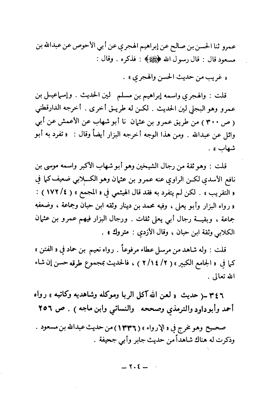 لعن الله آكل الربا وموكله وشاهديه وكاتبه صحيح رواه أحمد وأبو داود والترمذي والنسائي وابن ماجة وهو في الارواء