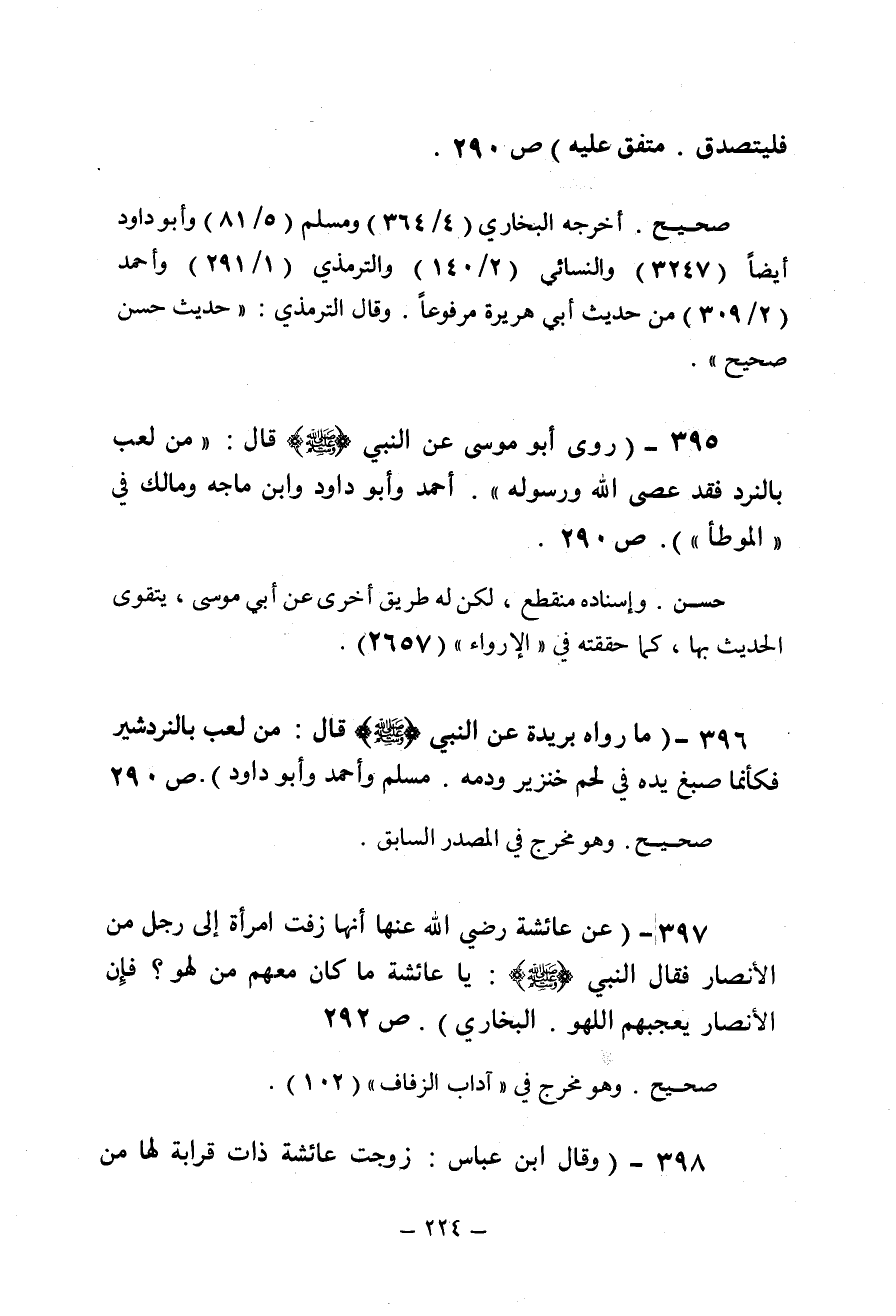 من لعب بالنردشير فكأنما صبغ يده في لحم خنزير ودمه صحيح أخرجه مسلم وأحمد وأبو داود وهو في الارواء