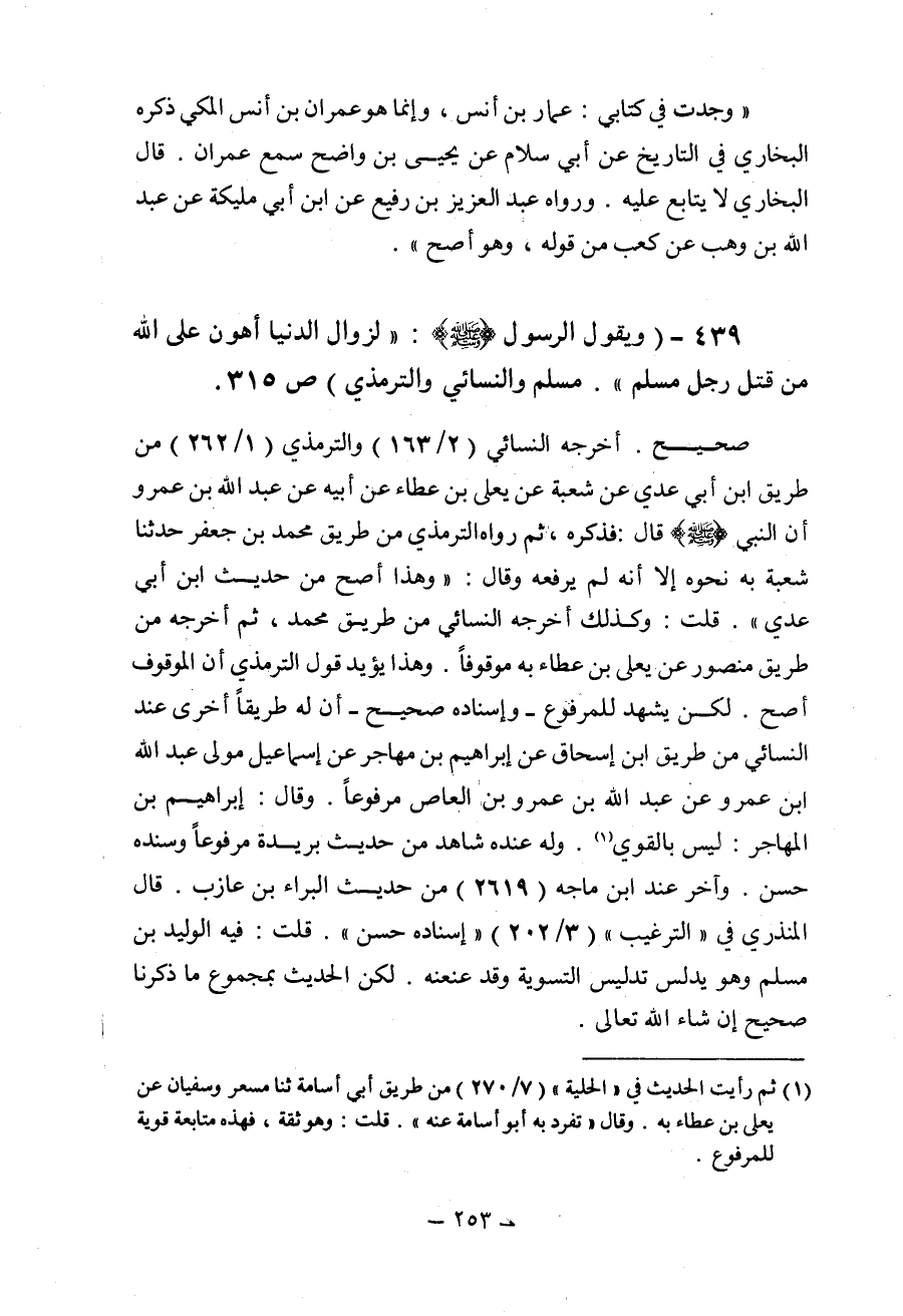 لزوال الدنيا أهون علىالله من قتل رجل مسلم صحيح أخرجه النسائي والترمذي