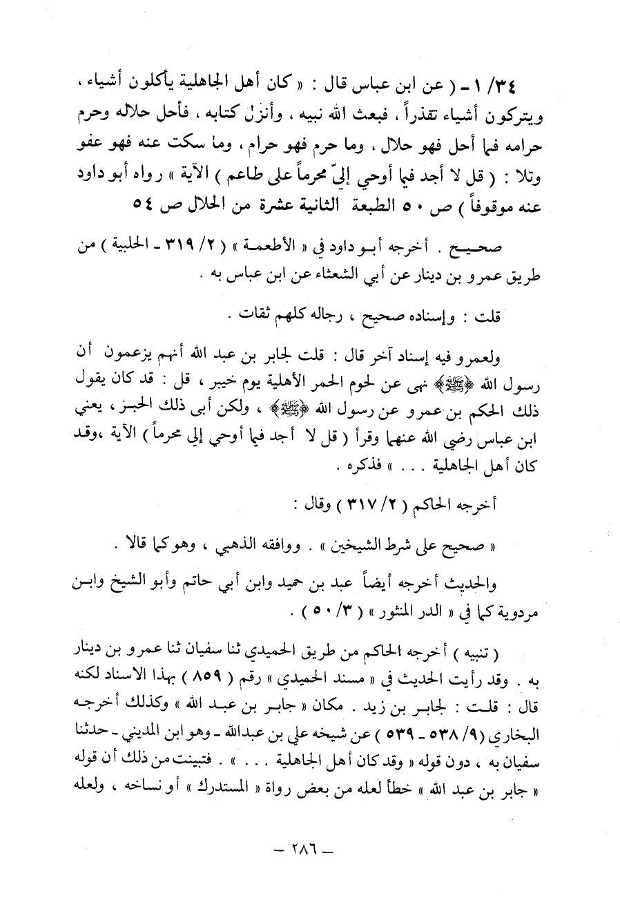 عن ابن عباس قال: كان أهل الجاهلية يأكلون أشياء ويتركون أشياء تقذرا فبعث الله نبيه وأنزل كتابه فأحل حلاله وحرم حرامه فما أحل فهو حلال وما حرم فهو حرام وما سكت عنه فهو عفو وتلا {قل لاأجد فيما أوحي إلي محرما على طاعم} الآية صحيح أخرجه أبو داود