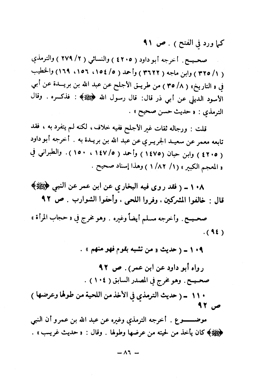 عن ابن عمر عن النبي (ص) قال خالفوا المشركين وفروا اللحى وأحفوا الشوارب أخرجه البخاري ومسلم وغيره