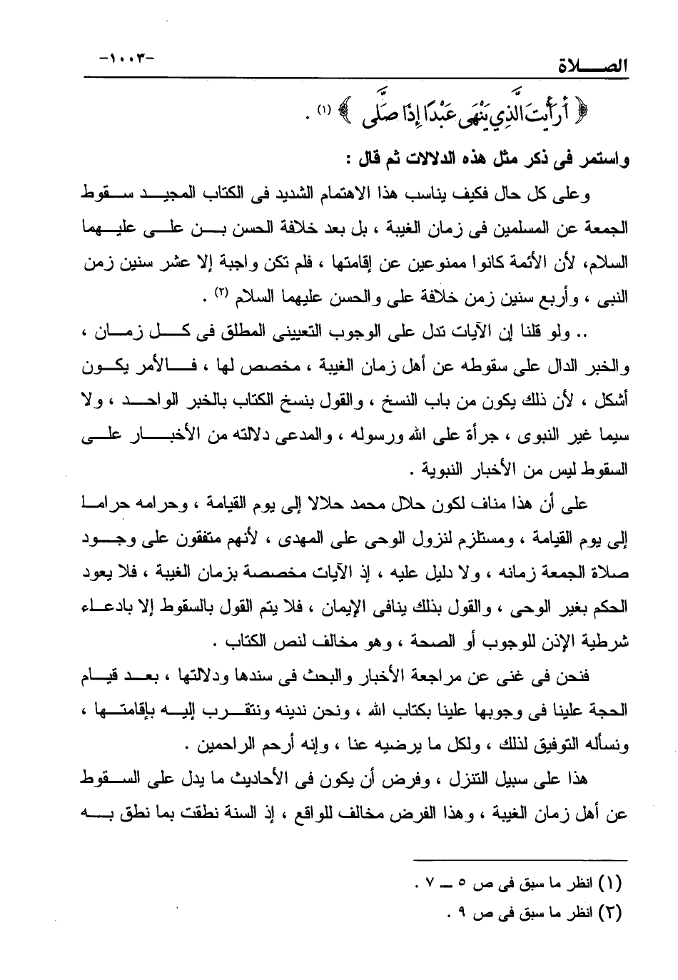 هذا على سبيل التنزل، وفرض أن يكون فى الأحاديث ما يدل على السقوط عن أهل زمان الغيبة، وهذا الفرض مخالف للواقع، إذ السنة نطقت بما نطق به