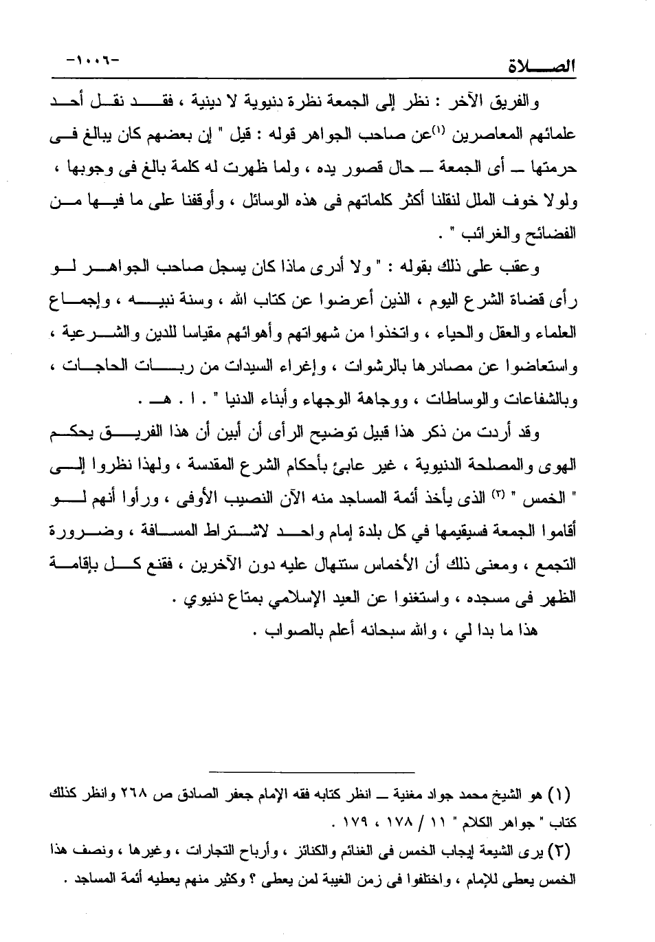 (¬1) هو الشيخ محمد جواد مغنية ـ انظر كتابه فقه الإمام جعفر الصادق ص 268 وانظر كذلك كتاب " جواهر الكلام " 11 / 178، 179.