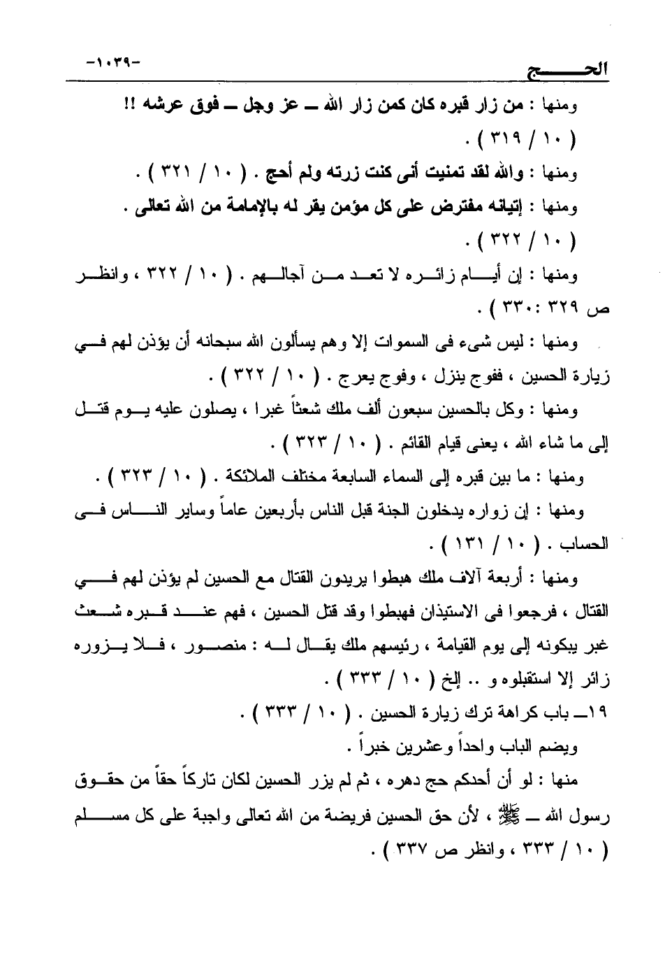 19ـ باب كراهة ترك زيارة الحسين. (10 / 333) .