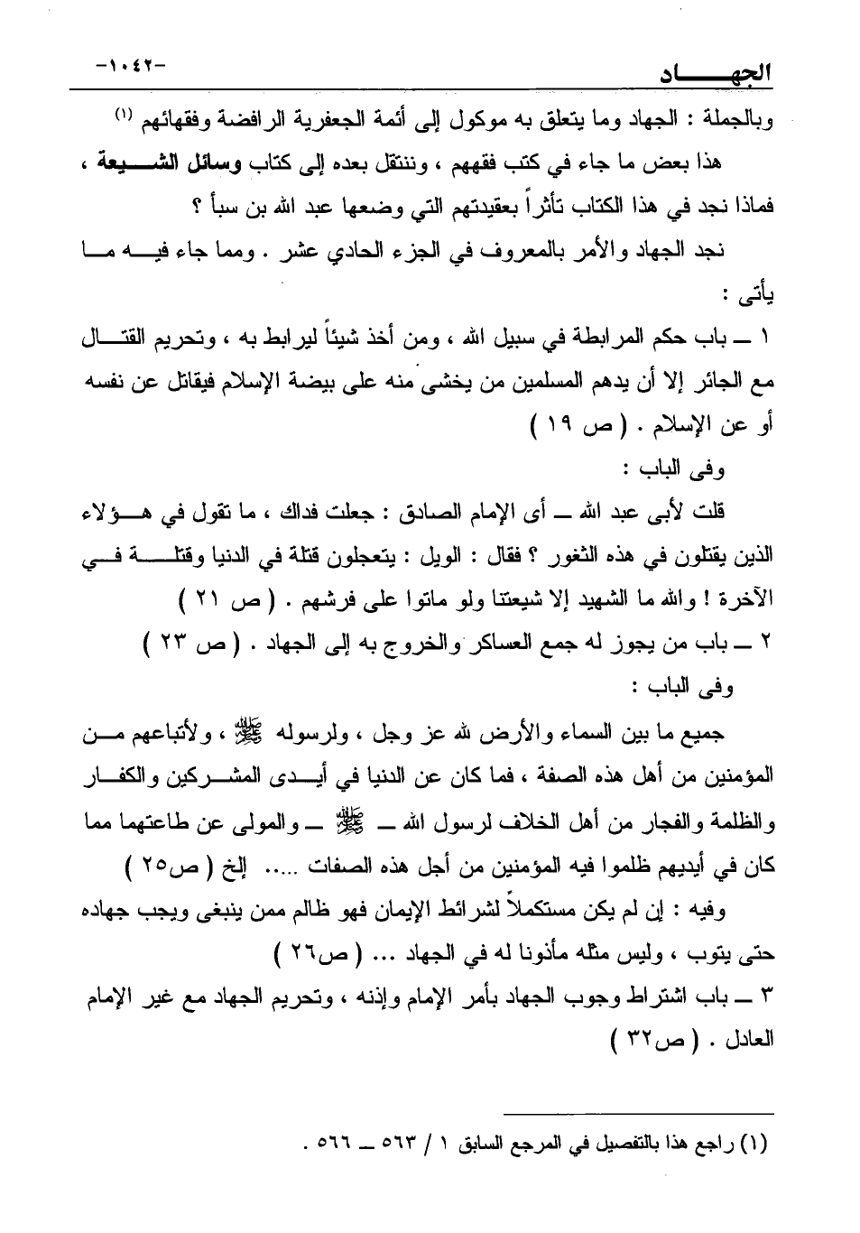 وبالجملة: الجهاد وما يتعلق به موكول إلى أئمة الجعفرية الرافضة وفقهائهم (¬1)